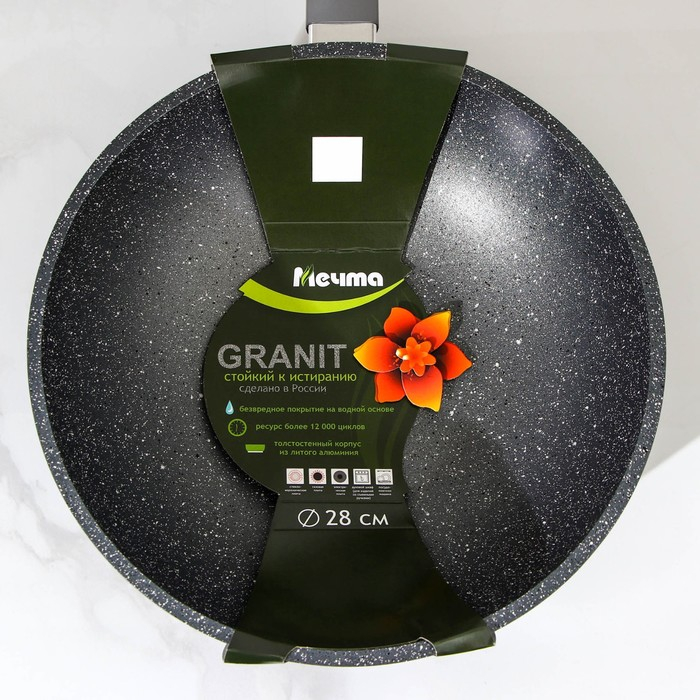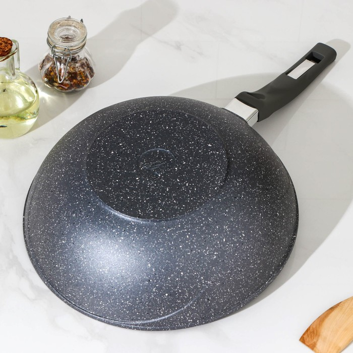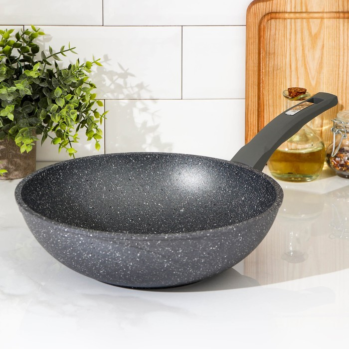 Сковорода-ВОК «Гранит», d=28 см, пластиковая ручка, антипригарное покрытие, цвет серый