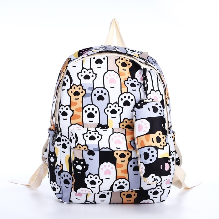 Рюкзак школьный из текстиля на молнии, 3 кармана, пенал, цвет разноцветный/серый