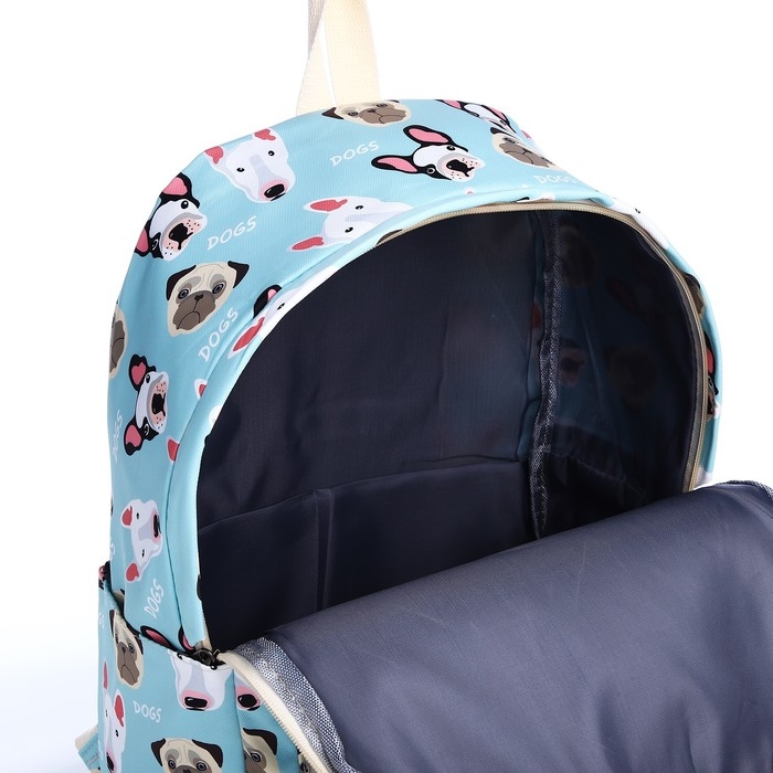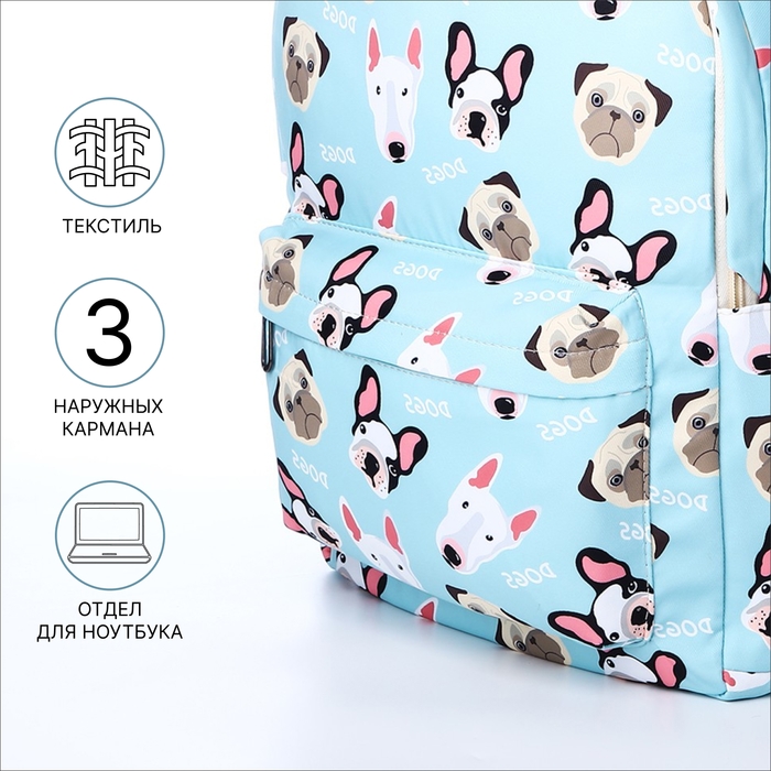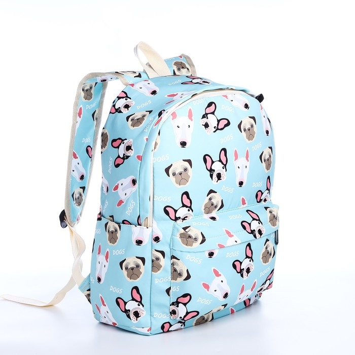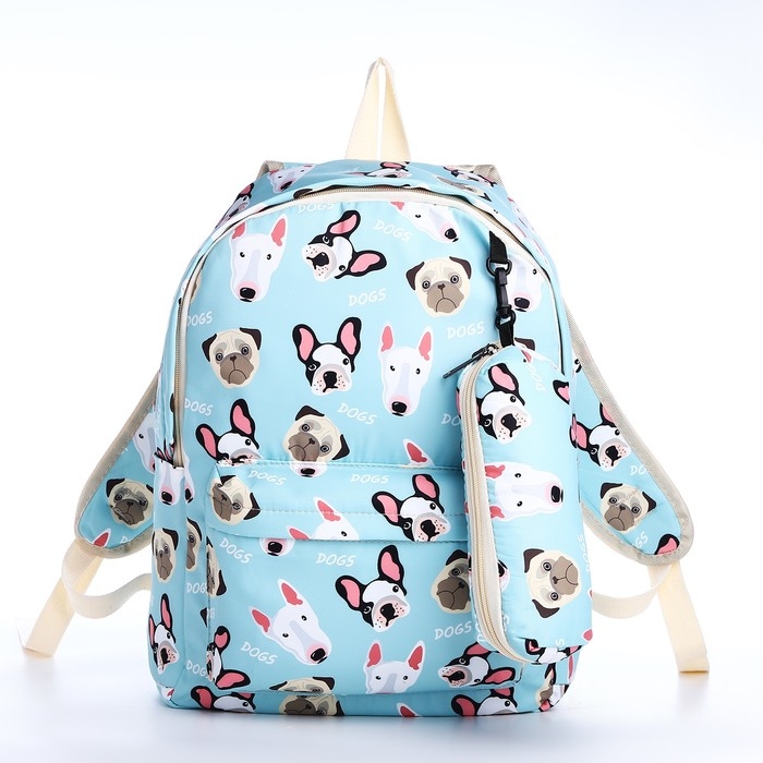 Рюкзак школьный из текстиля на молнии, 3 кармана, пенал, цвет голубой