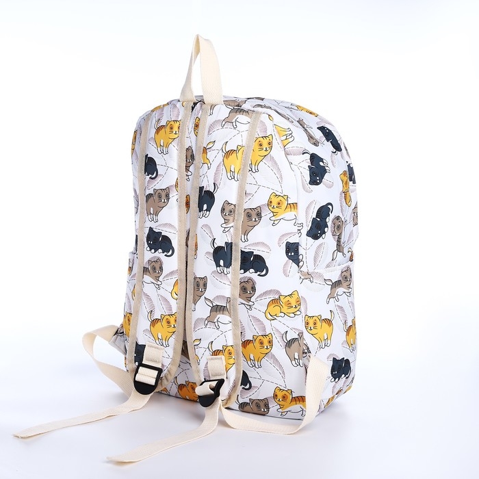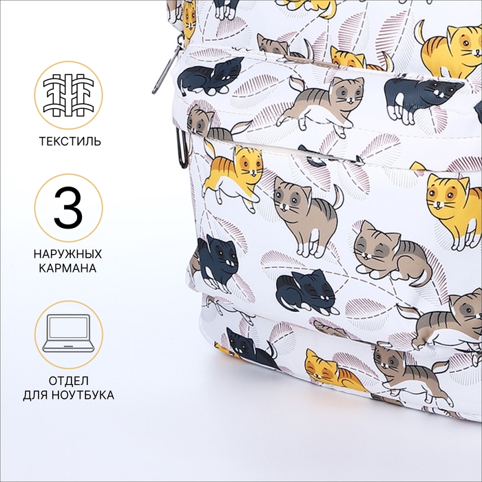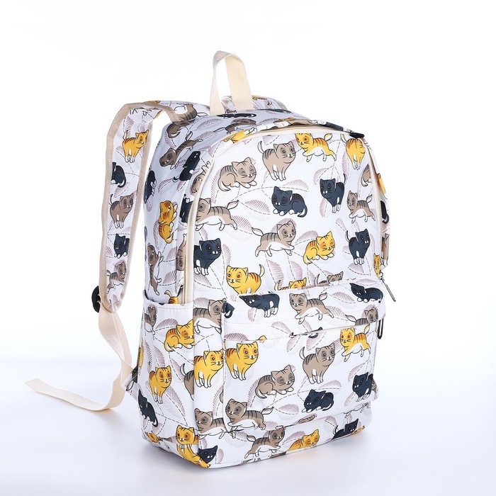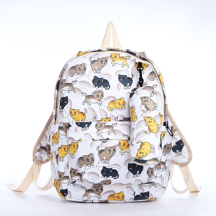 Рюкзак школьный из текстиля на молнии, 3 кармана, пенал, цвет белый/разноцветный