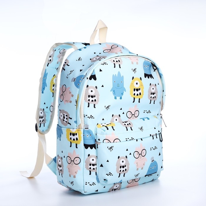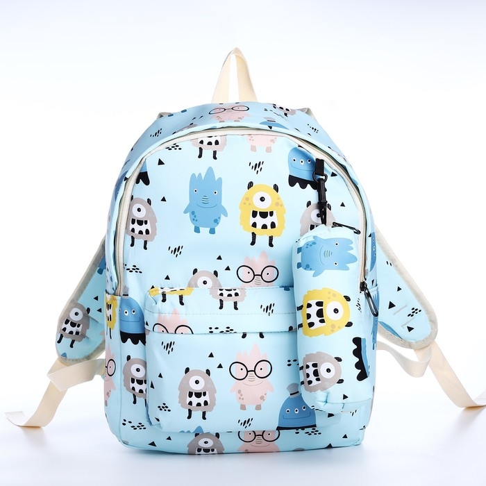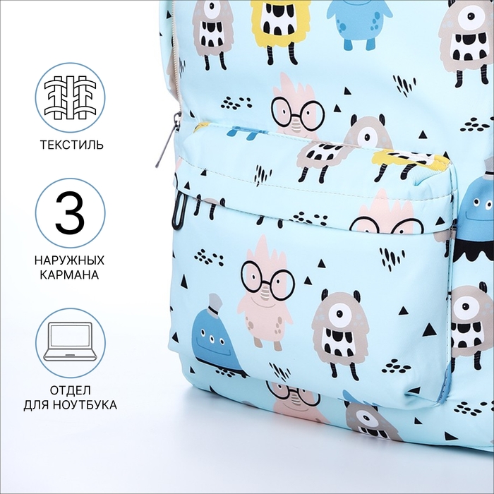 Рюкзак школьный из текстиля на молнии, 3 кармана, пенал, цвет голубой