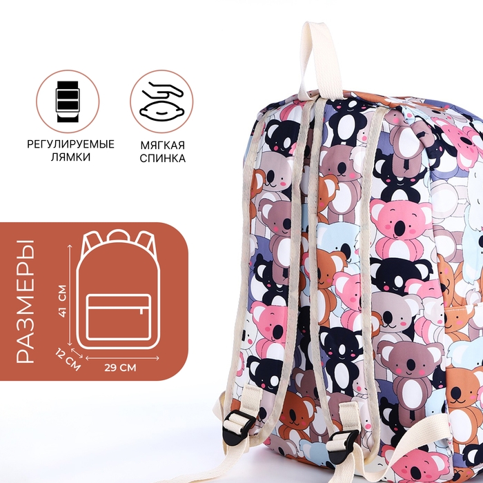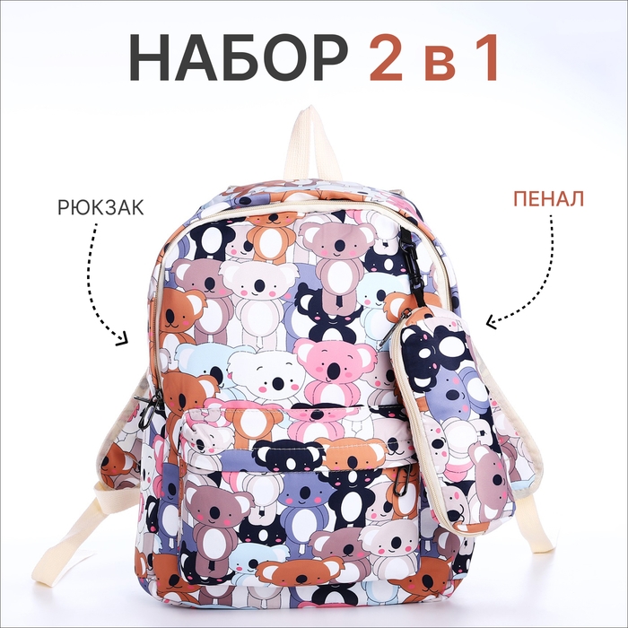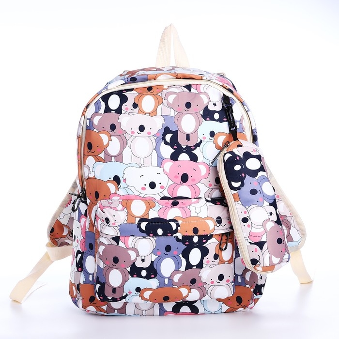 Рюкзак школьный из текстиля на молнии, 3 кармана, пенал, цвет разноцветный