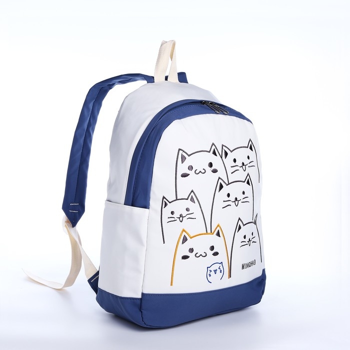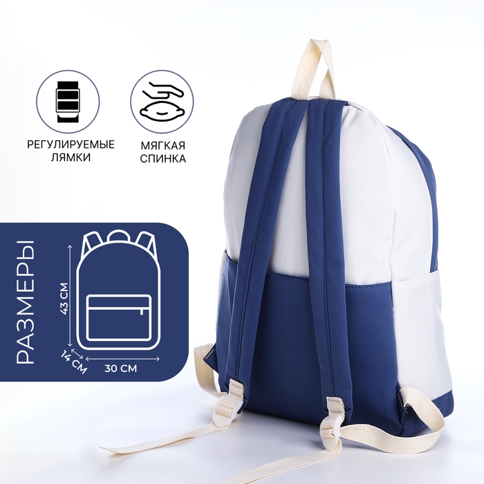 Рюкзак школьный из текстиля на молнии, 3 кармана, цвет синий
