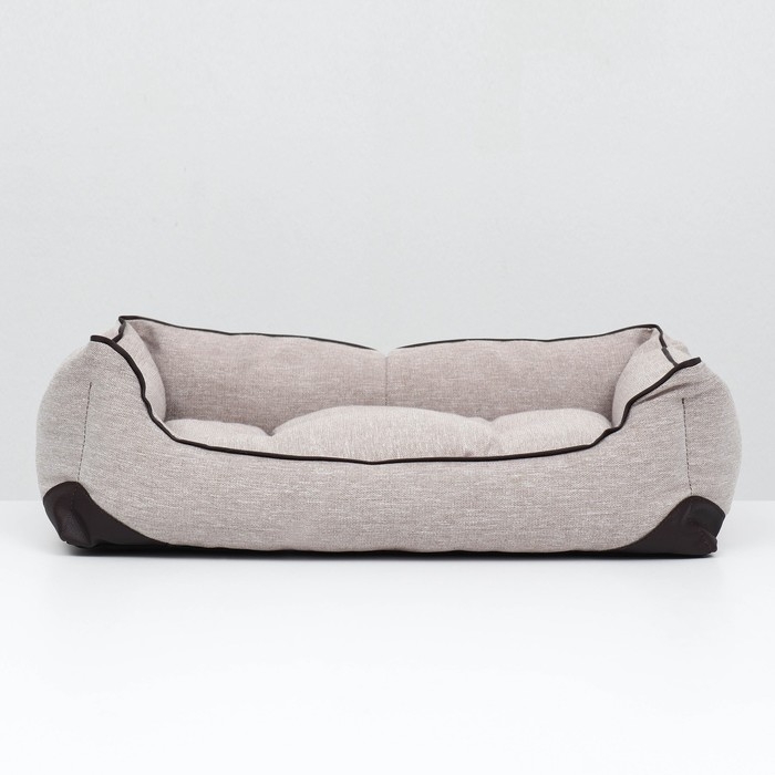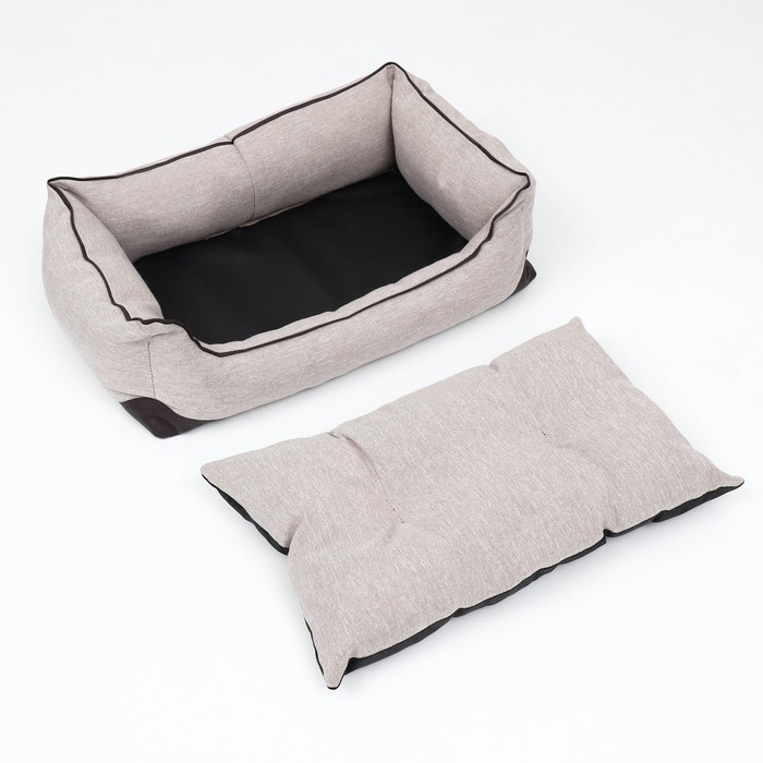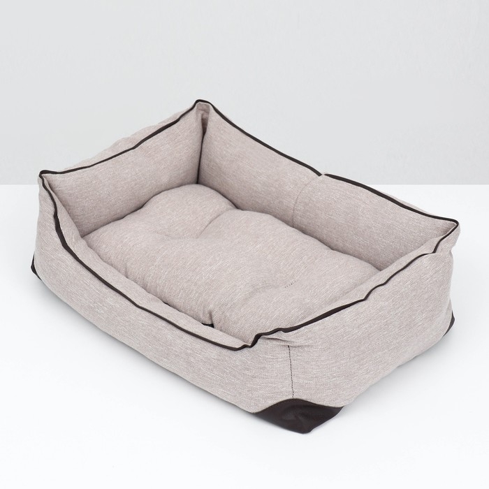Лежак с подушкой и кантом "ФЬЮЖЕН-ЛАЙТ" №1, 55 х 40 х 18 см, рогожка, экокожа, синтепух, бежевый 101