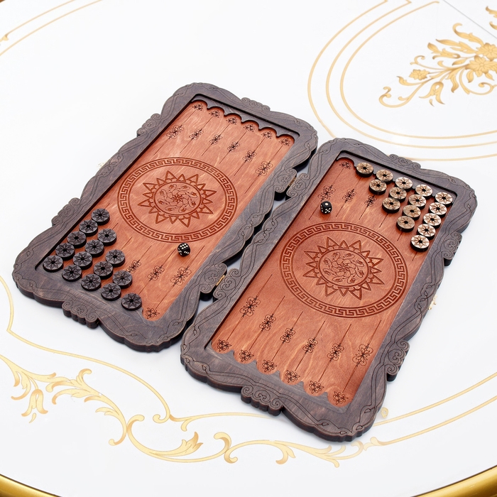 Нарды деревянные большие, резные, настольная игра "Герб", 45 х 45 см