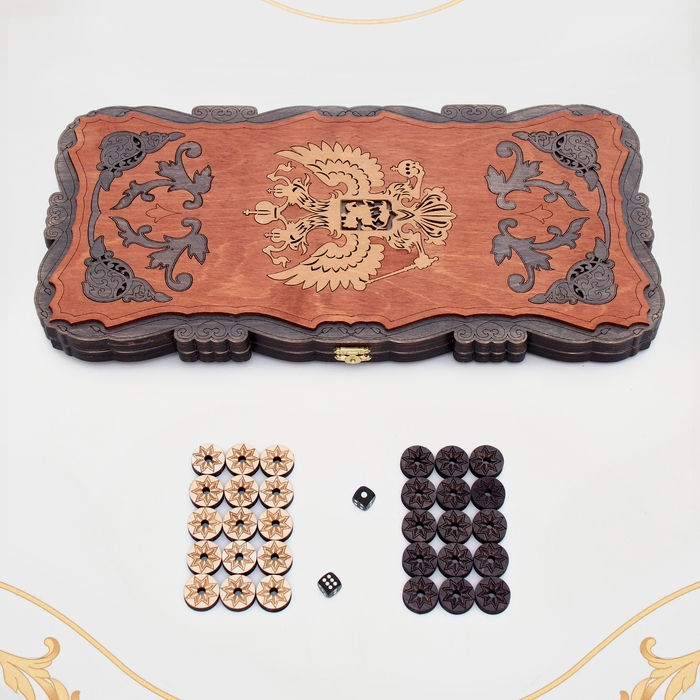 Нарды деревянные большие, с шашками "Герб России", настольная игра, 60 х 60 см