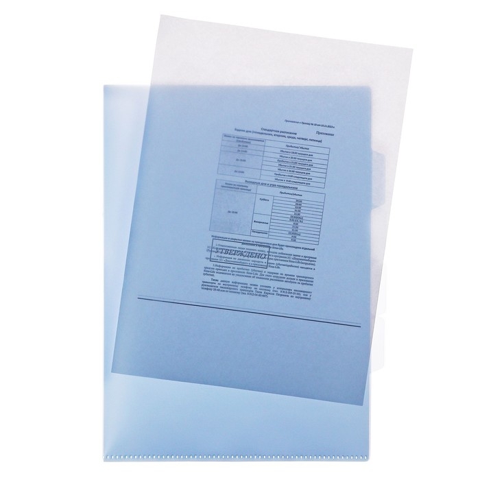 Папка-уголок А4, 100 мкм, Calligrata, эконом, прозрачная, синяя