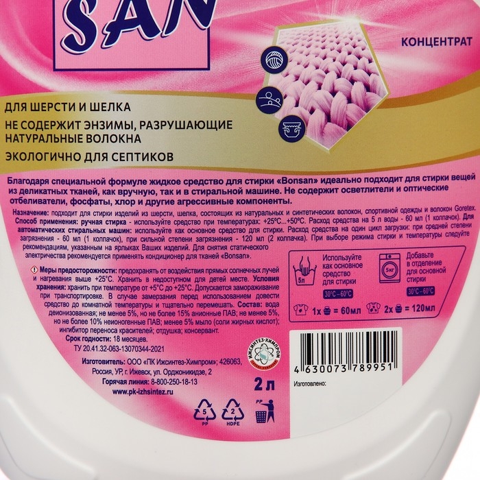Средство для стирки деликатных тканей Bonsan, 2 л ПЭ