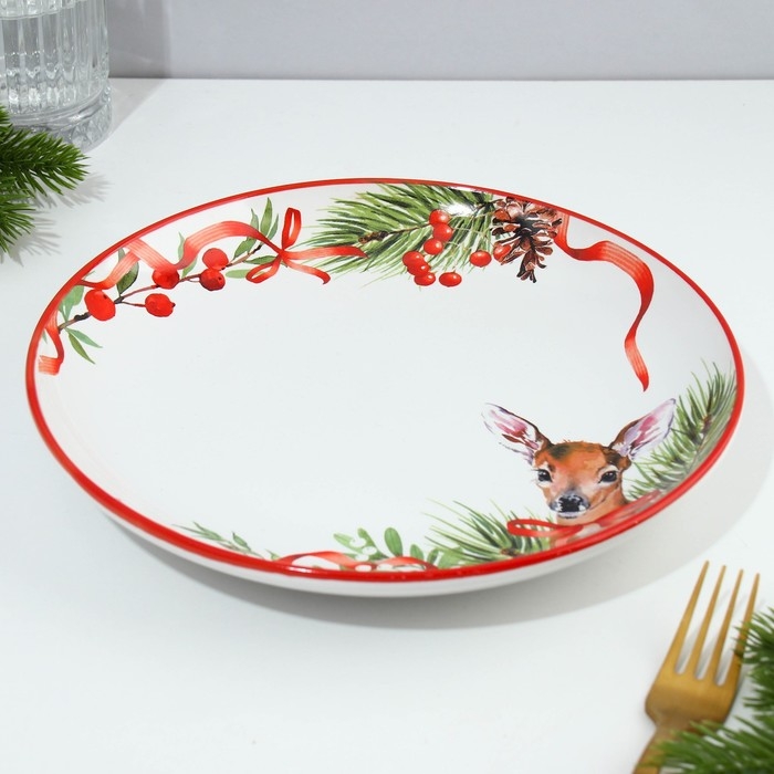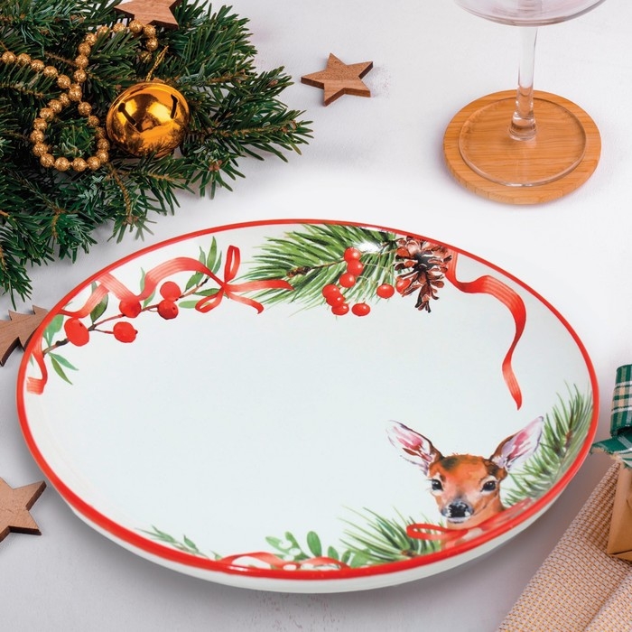 Новый год. Тарелка керамическая «Новогодняя сказка» красная, 22.5 см, цвет белый