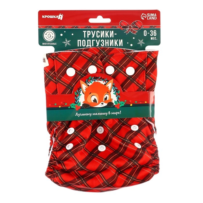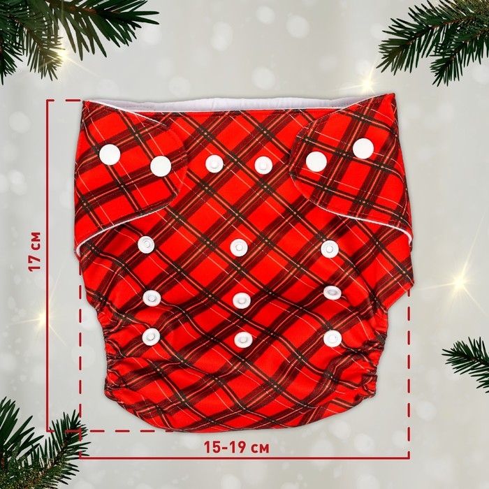 Многоразовый подгузник «Новогодняя клетка», 0-36 мес., цвет красный, подарочная упаковка, Крошка Я