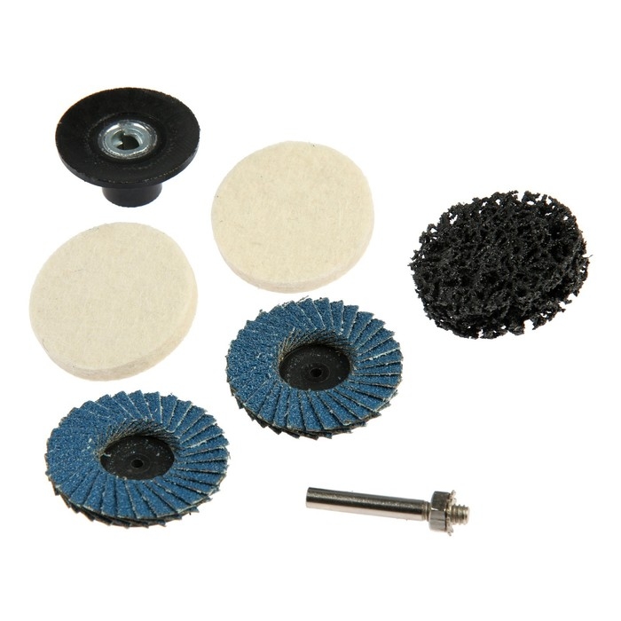 Набор кругов ТУНДРА, коралловый, 2 войлочных, 2 лепестковых, 50 мм, с адаптером, 6 шт.