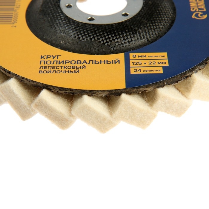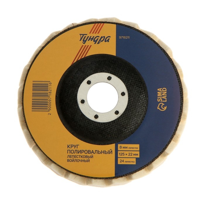 Круг полировальный лепестковый ТУНДРА, войлочный, 125 х 22 мм, лепесток 8 мм, 24 лепестка