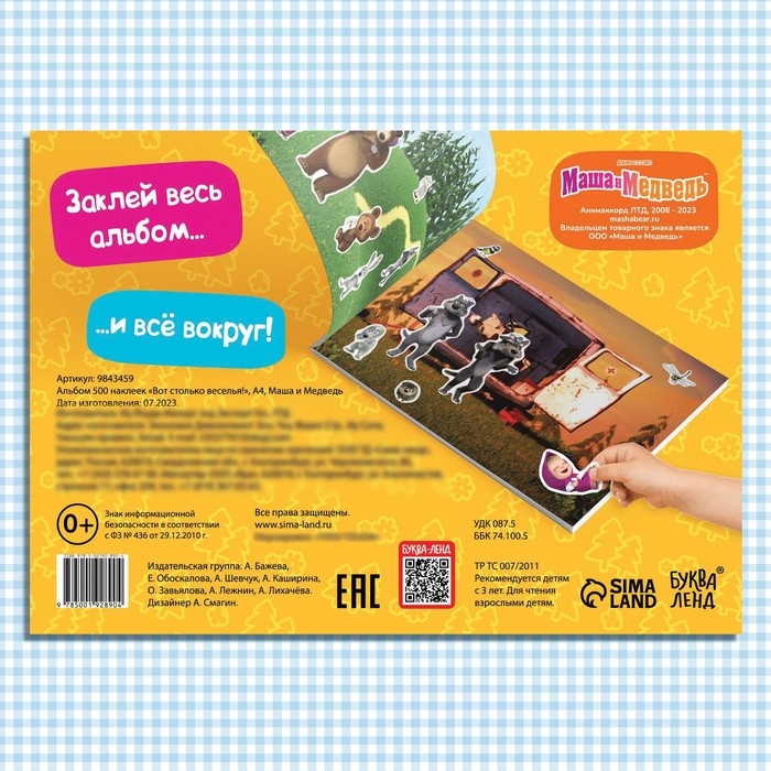 Альбом 500 наклеек «Вот столько веселья!», А4, 12 стр., Маша и Медведь