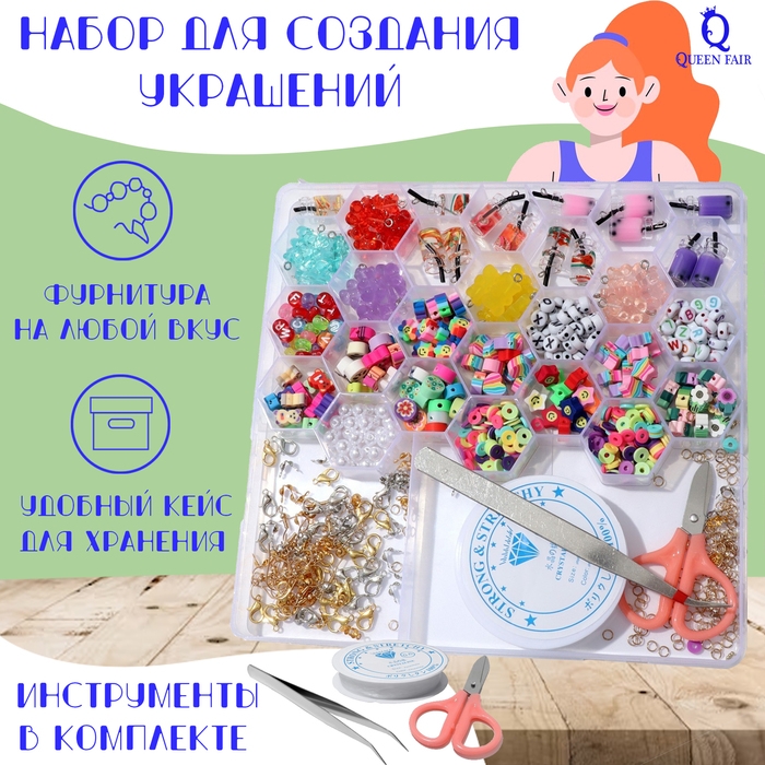 Набор для создания украшений «Краски», 24 вида бусин, фурнитура, ножницы, леска 0,6 мм