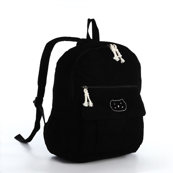 Рюкзак школьный из текстиля на молнии, 4 кармана, цвет чёрный