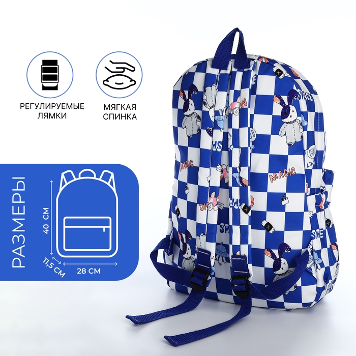 Рюкзак школьный из текстиля на молнии, 3 кармана, цвет синий