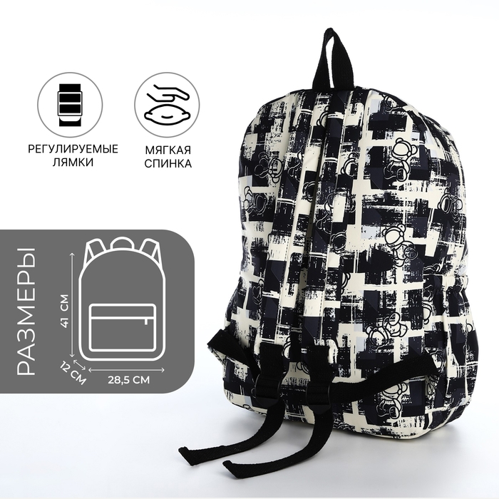 Рюкзак школьный из текстиля на молнии, 3 кармана, цвет чёрный