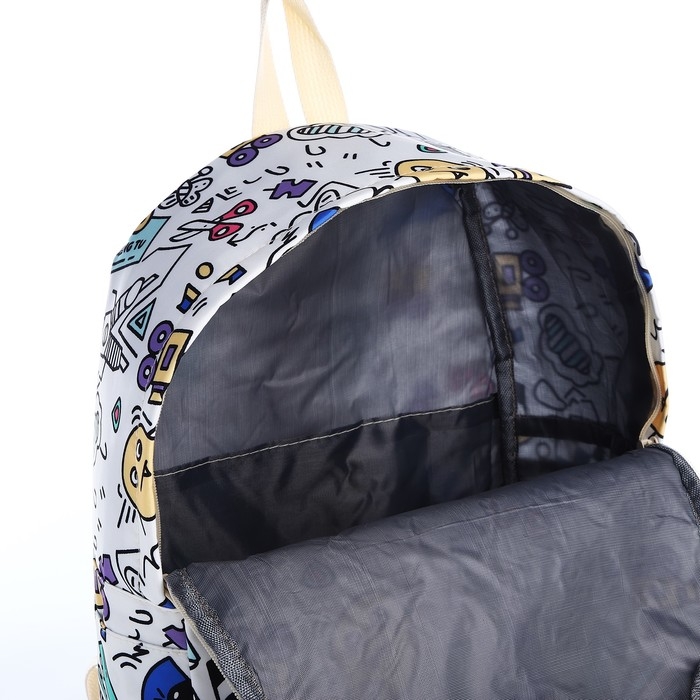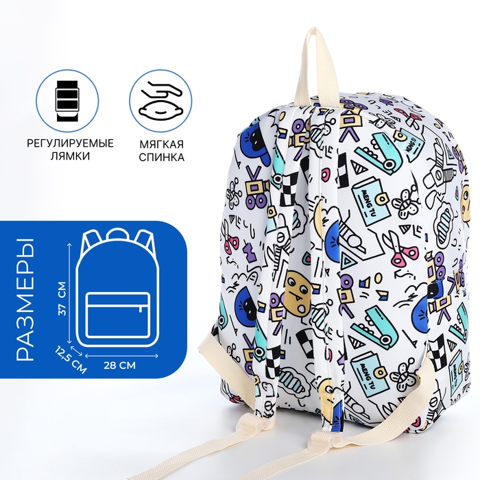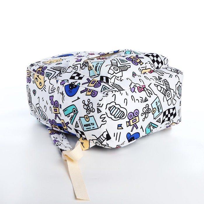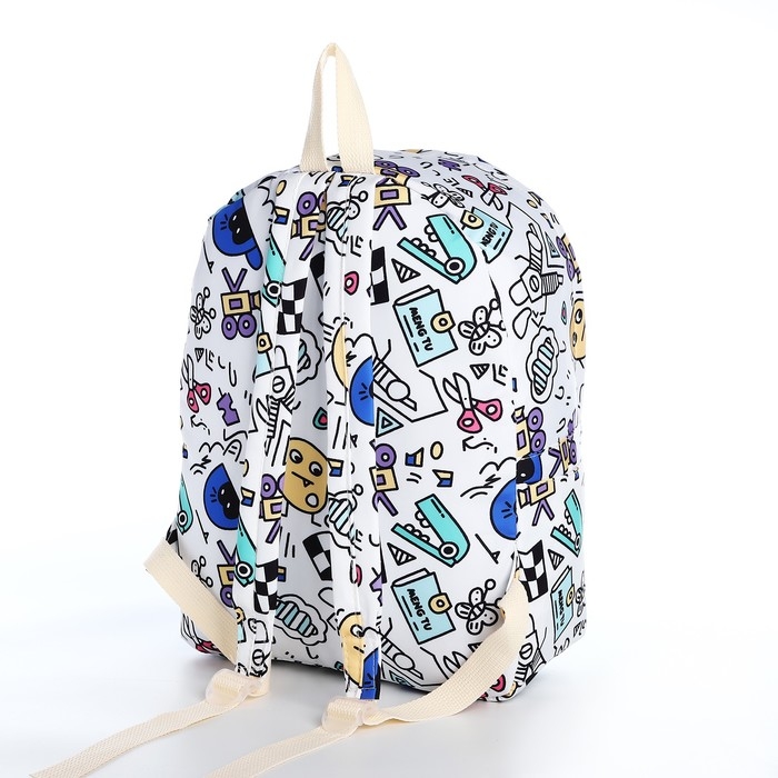 Рюкзак школьный из текстиля на молнии, 3 кармана, цвет белый/разноцветный