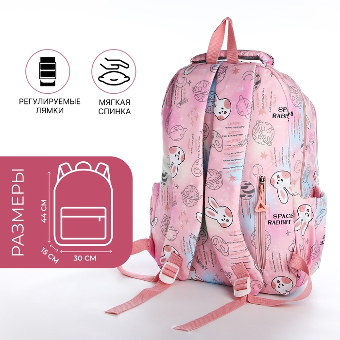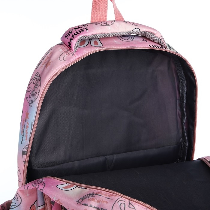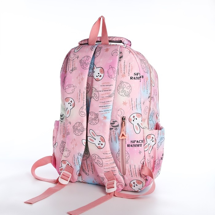 Рюкзак школьный из текстиля 2 отдела на молнии, 4 кармана, цвет розовый