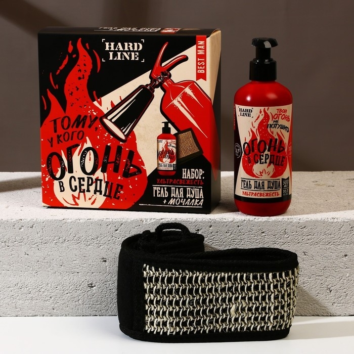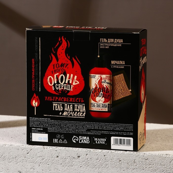 Подарочный набор косметики «Тому, у кого огонь в сердце», гель для душа 300 мл и мочалка для тела, ЧИСТОЕ СЧАСТЬЕ