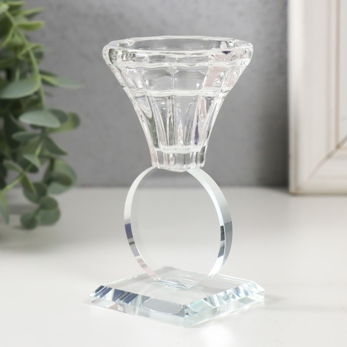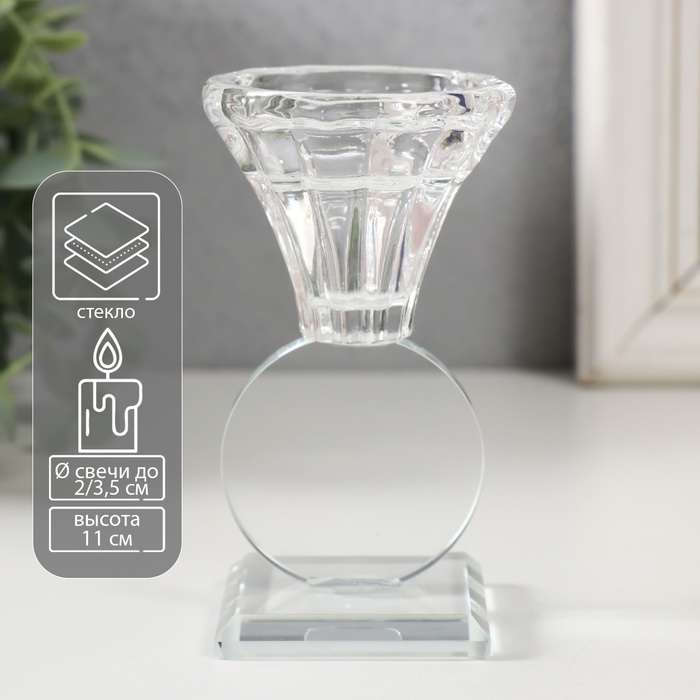 Подсвечник стекло на 1 свечу "Бутон на круге" d=2 и 3,5см 6х6х11 см