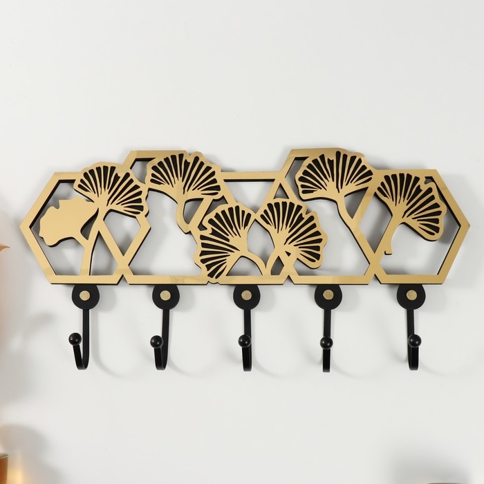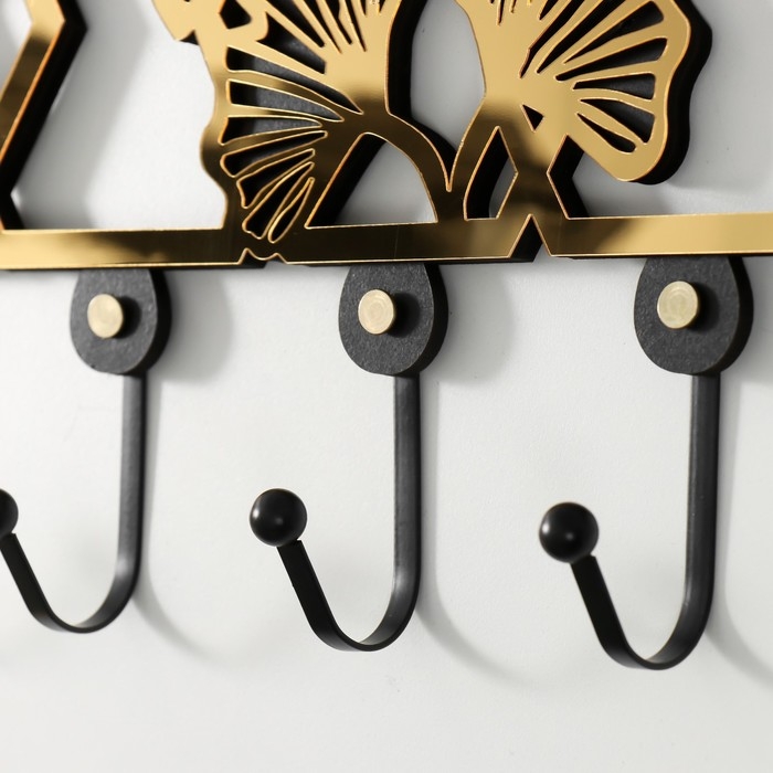Крючки декоративные дерево "Листья-веер" чёрный, зеркальный 4,5х42,5х20,3 см