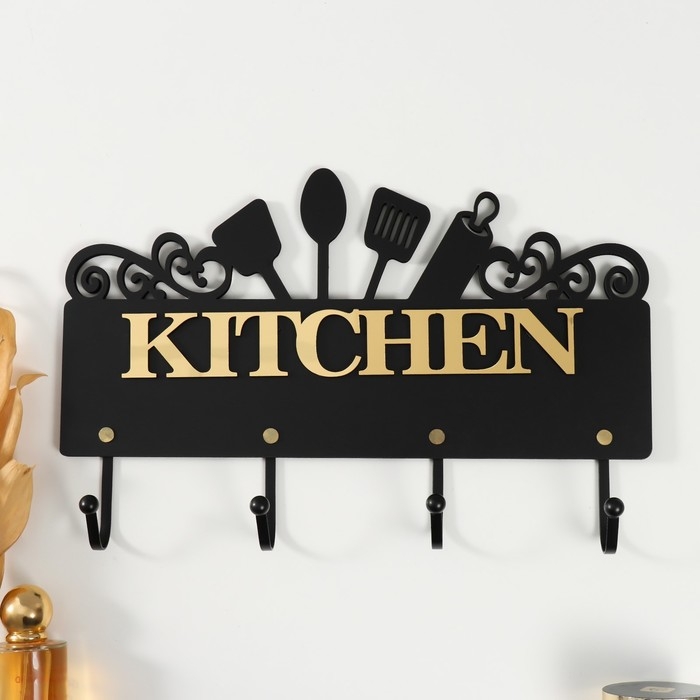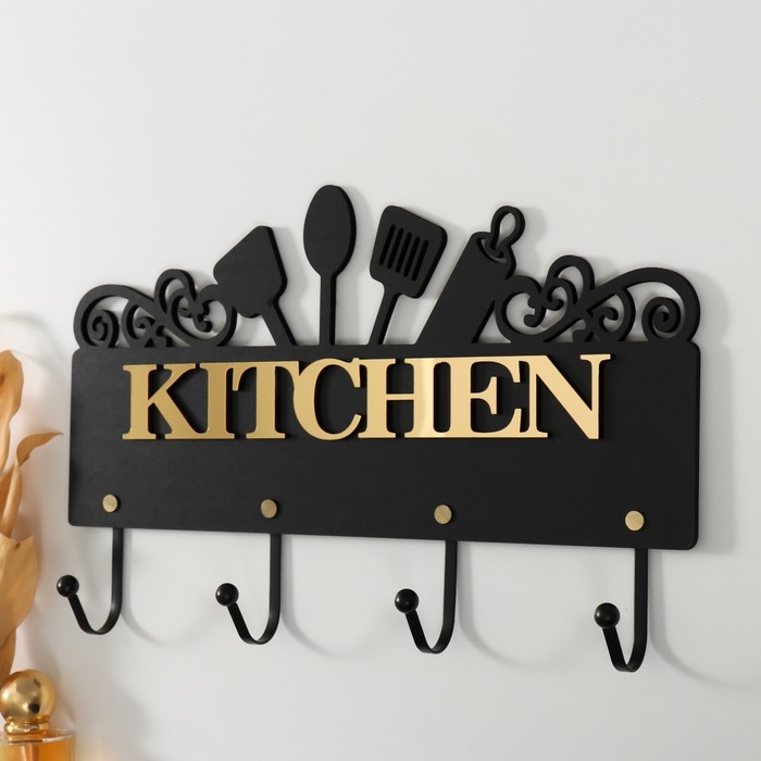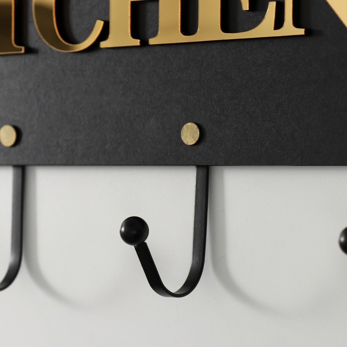 Крючки декоративные дерево "Кухонные принадлежности" чёрный, зеркальный 4,3х34х22,3 см