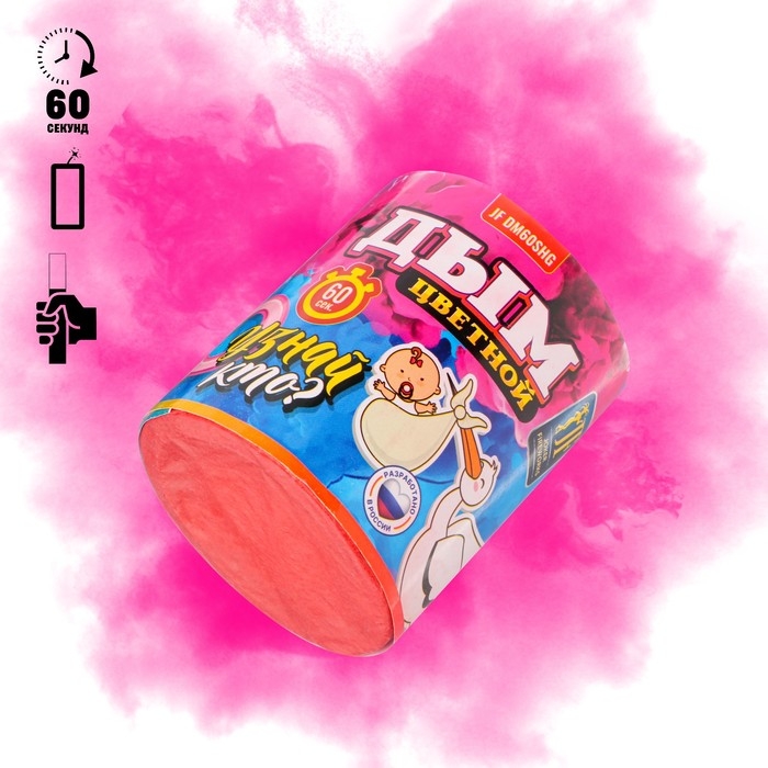 Розовый дым для гендер пати, заряд 1,75 дюйм, очень высокая интенсивность, 60 сек