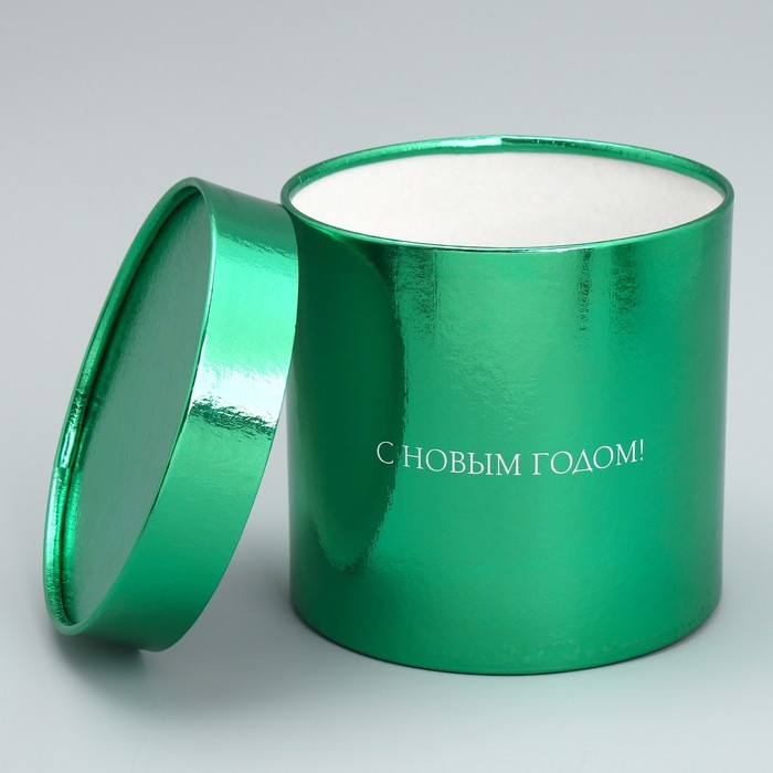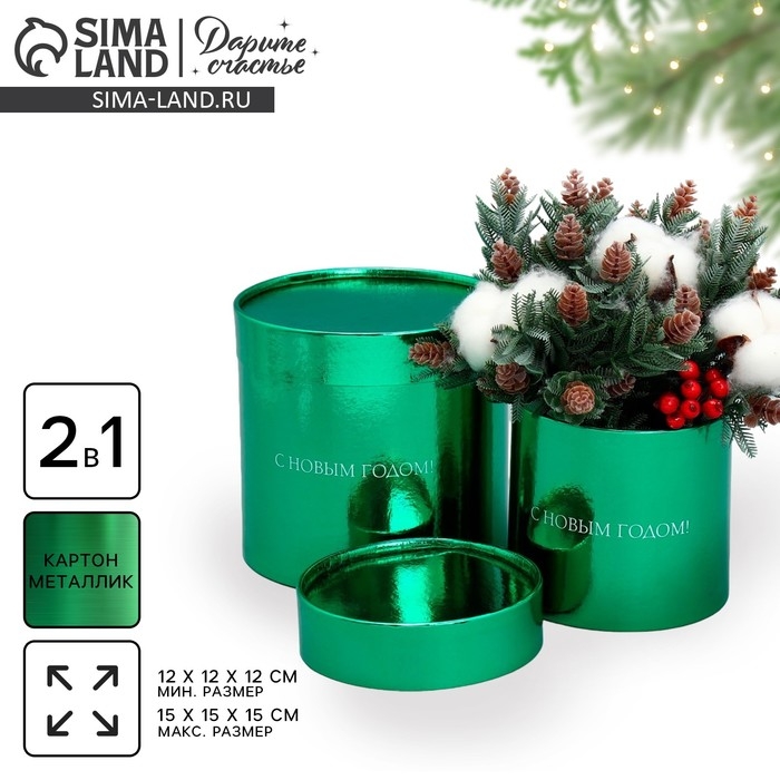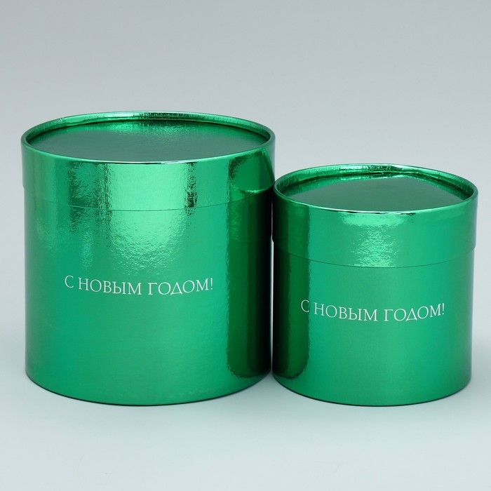 Набор коробок 2в1 круглые «С Новым годом!», зелёный металлик, 12 х 12, 15 х 15 см, Новый год