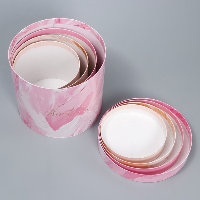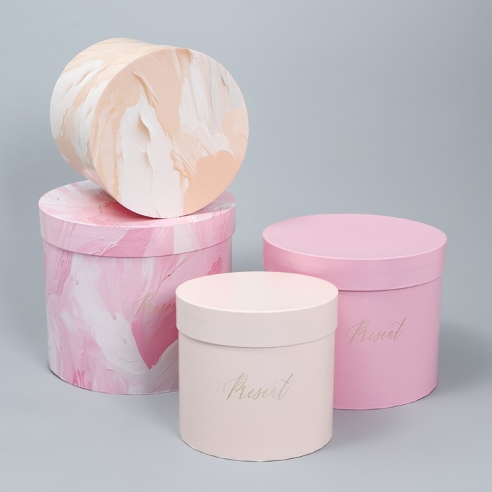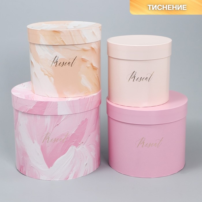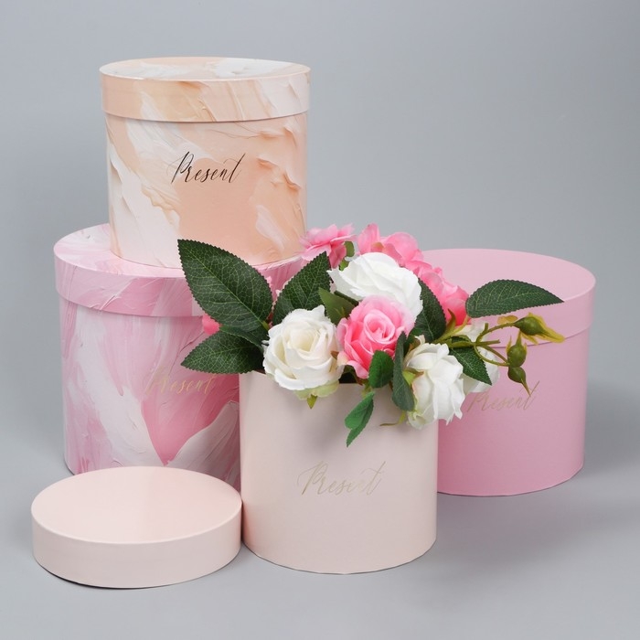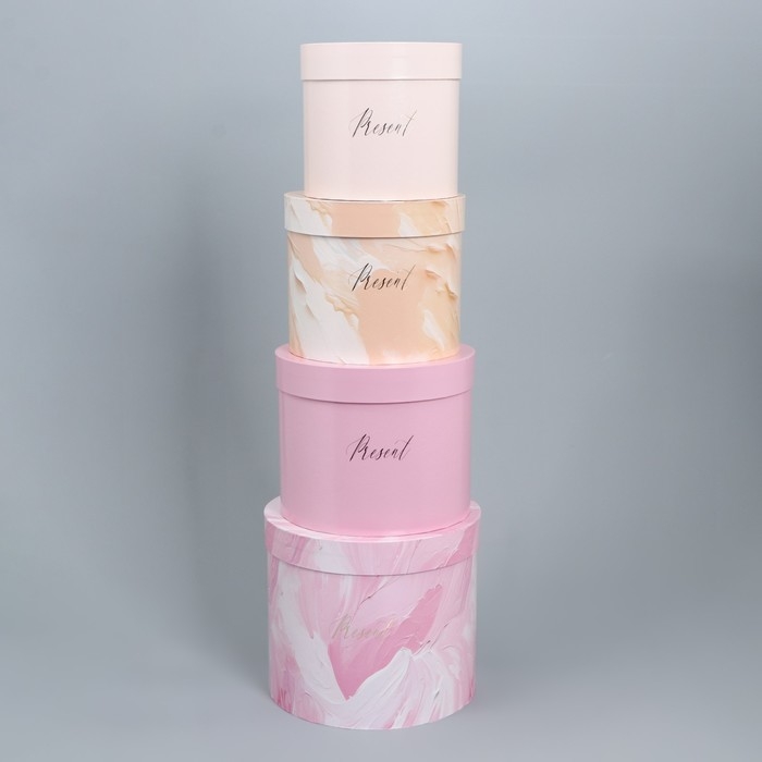 Набор шляпных коробок для цветов 4 в 1, упаковка подарочная, «Нежный», 14 х 13 см - 20 х 17.5 см