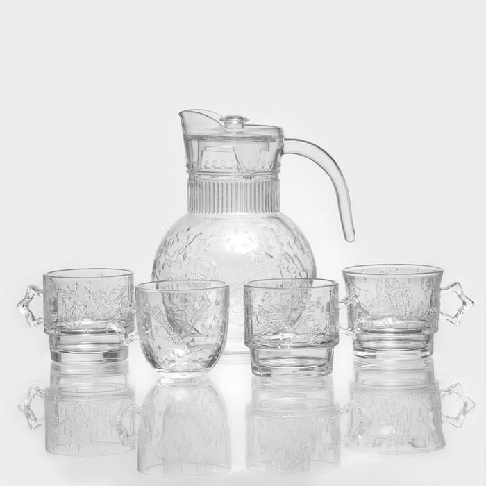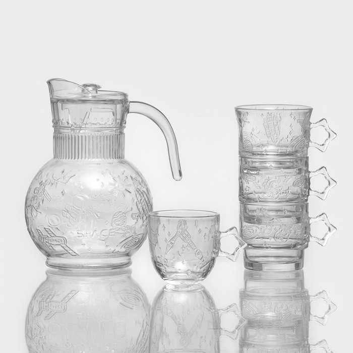 Набор для напитков из стекла «Космос», 5 предметов: кувшин 1,9 л, 4 кружки 300/280/280/250 мл