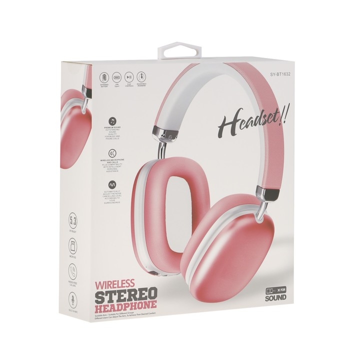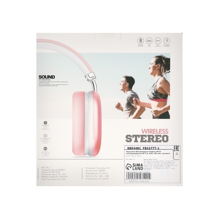 Наушники беспроводные RX-8, полноразмерные, микрофон, BT 5.3, AUX, 400 мАч, розовые