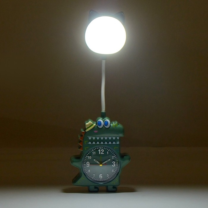 Часы - лампа представлены в ярком дизайне в форме динозаврика, они отлично впишутся в ваш интерьер. Интерьерные часы со светильником станут прекрасным декором для дома и дачи, их можно поставить как на прикроватную тумбочку в спальне, детской комнате, гостиной так и на стол или на комод в зале, холле или на кухне. Часы можно использовать в качестве ночника или офисной лампы на столе школьника.