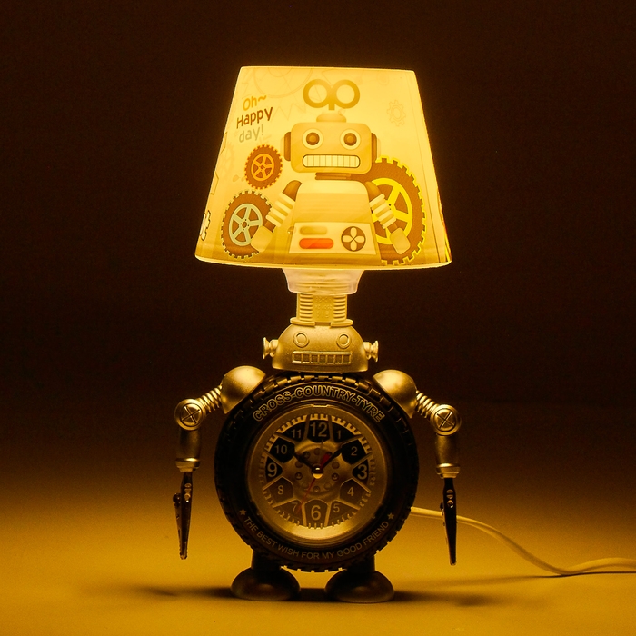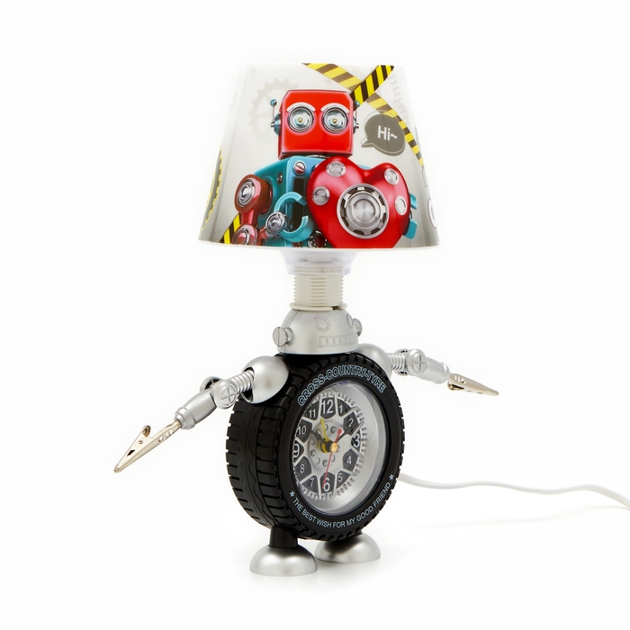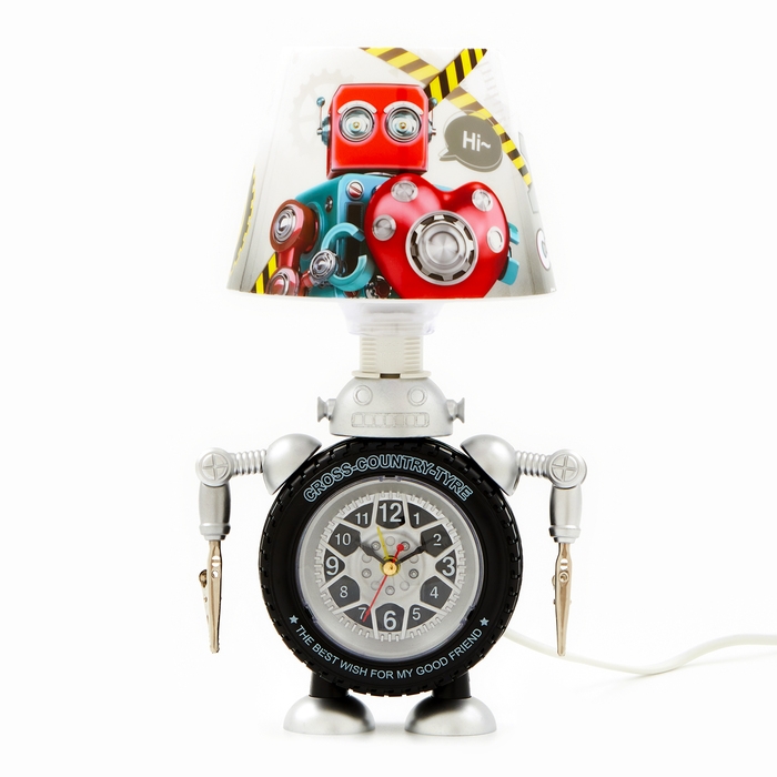 Часы - лампа представлены в ярком дизайне в форме робота, они отлично впишутся в ваш интерьер. Интерьерные часы со светильником станут прекрасным декором для дома и дачи, их можно поставить как на прикроватную тумбочку в спальне, детской комнате, гостиной так и на стол или на комод в зале, холле или на кухне. Часы можно использовать в качестве ночника или офисной лампы на столе школьника.