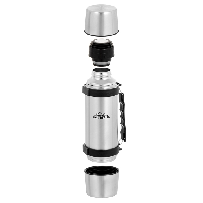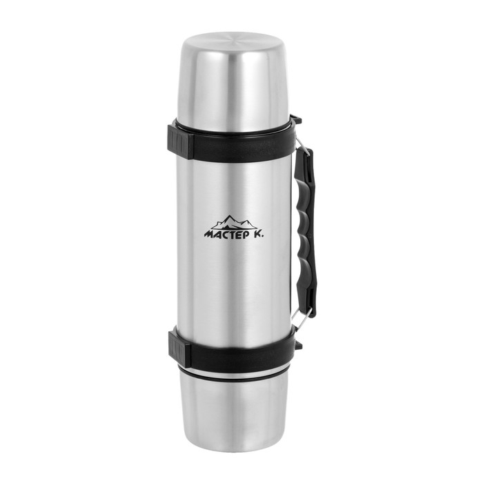 Термос, 1 л, Тропа "Мастер К", с двумя кружками, сохраняет тепло 24 ч