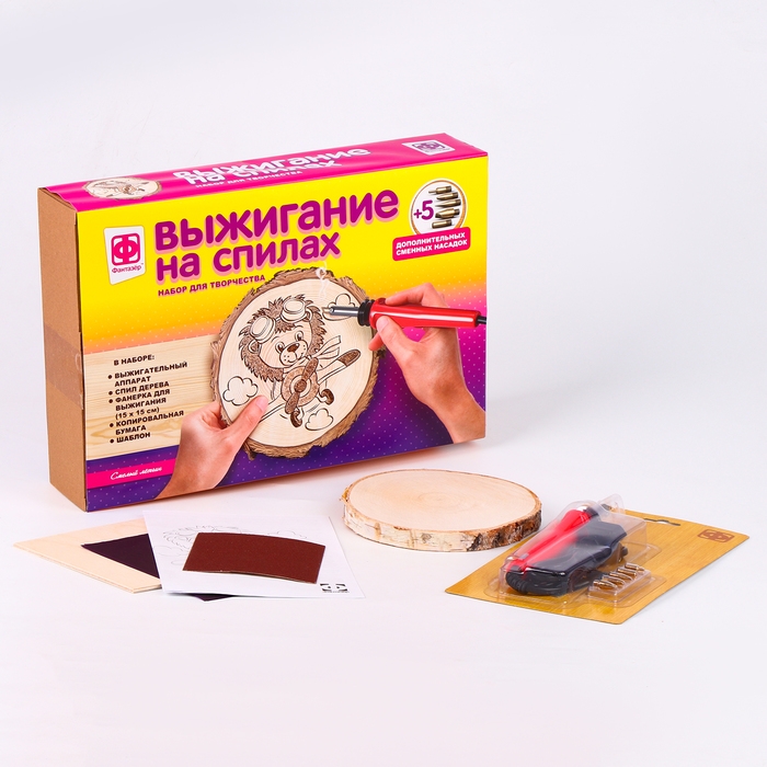 Фанера для тренировки и спил дерева включены в набор, чтобы ваш маленький художник мог создать не только произведение искусства, но и оригинальное украшение для дома или значимый подарок для близких.