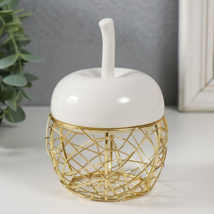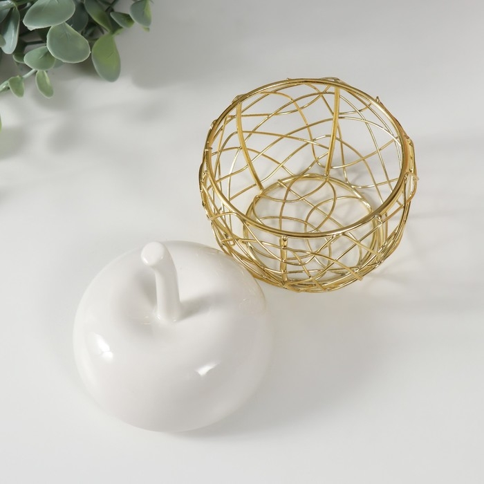 Шкатулка керамика, металл "Яблочко" белая 8,5х8,5х12 см