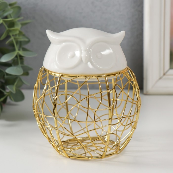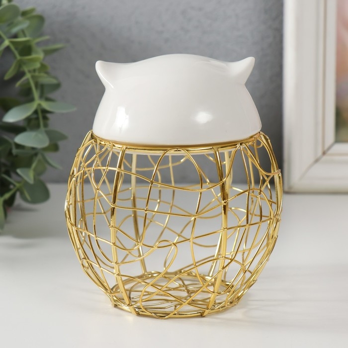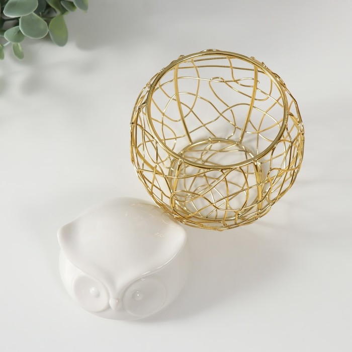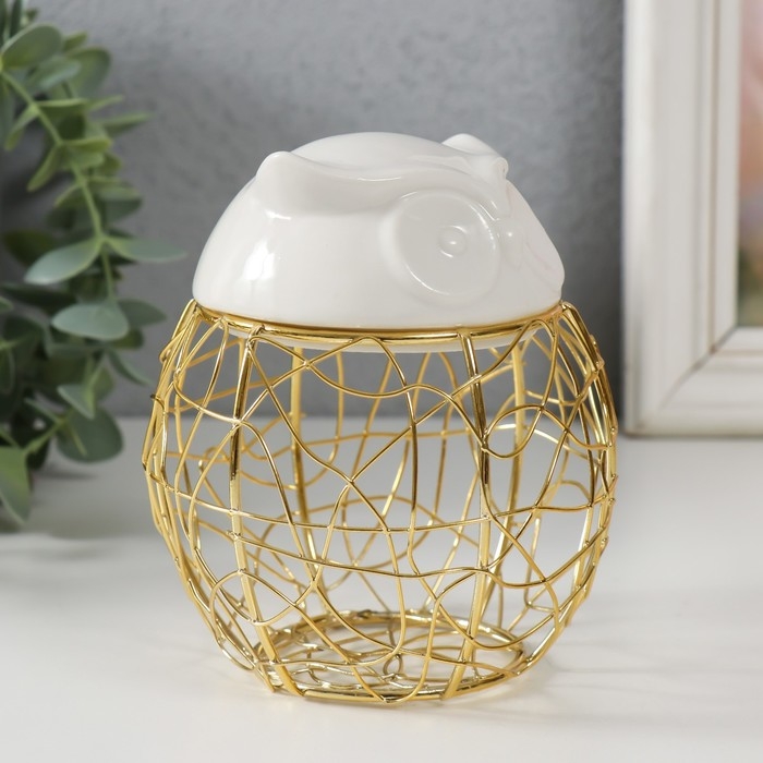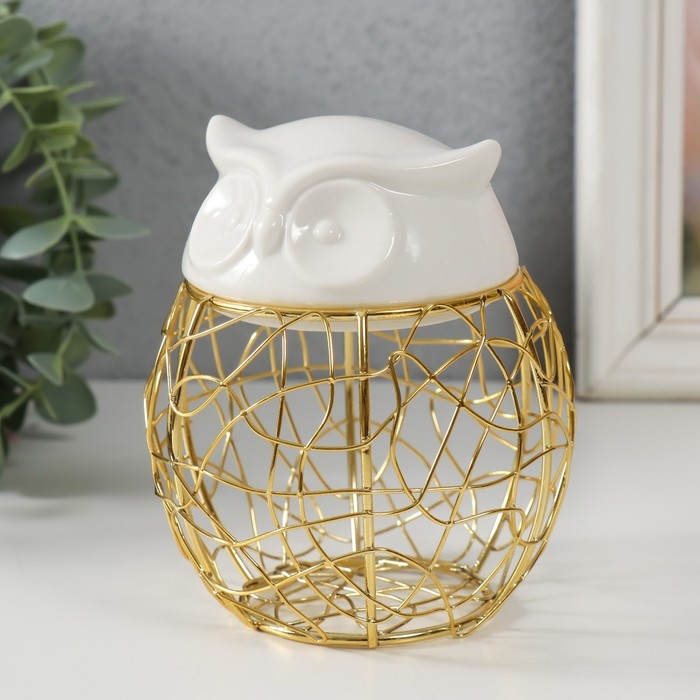 Шкатулка металл, керамика "Филин. Каракули" белая 10х10х11,5 см