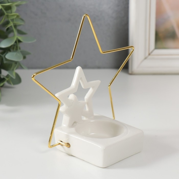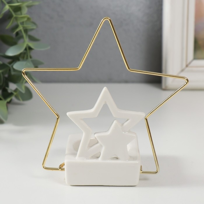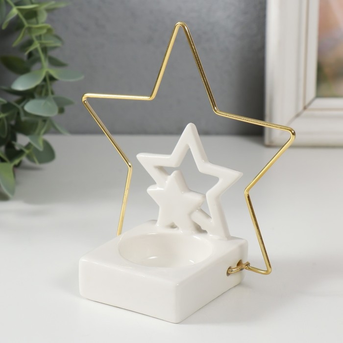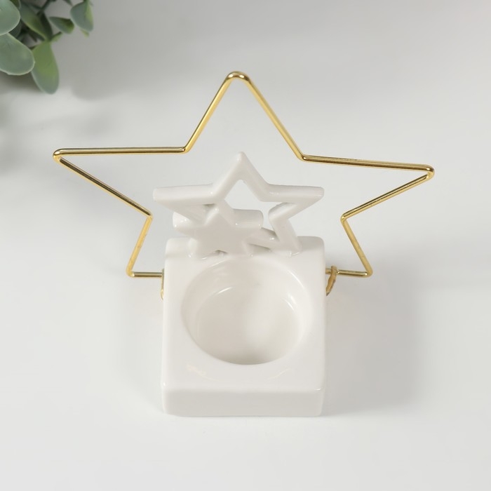 Подсвечник керамика, металл на 1 свечу "Звёзды" белый с золотом 13,4х6,5х13,2 см