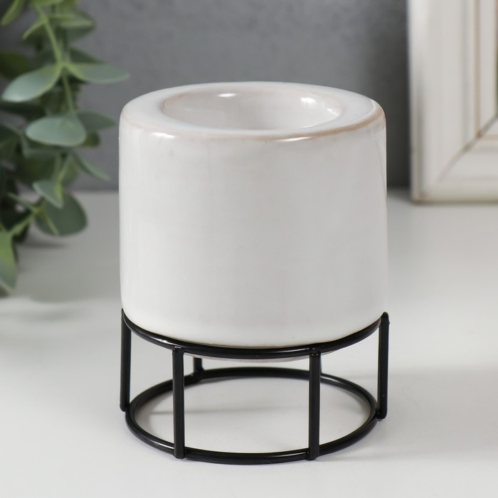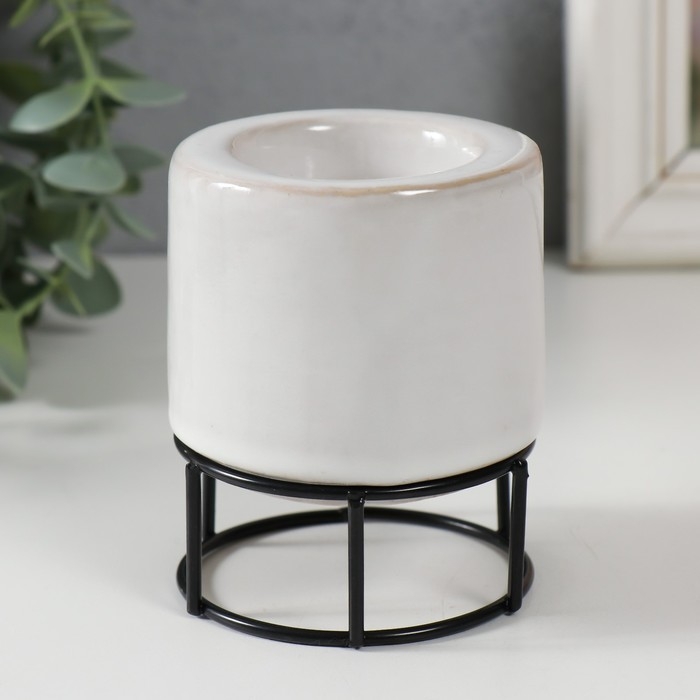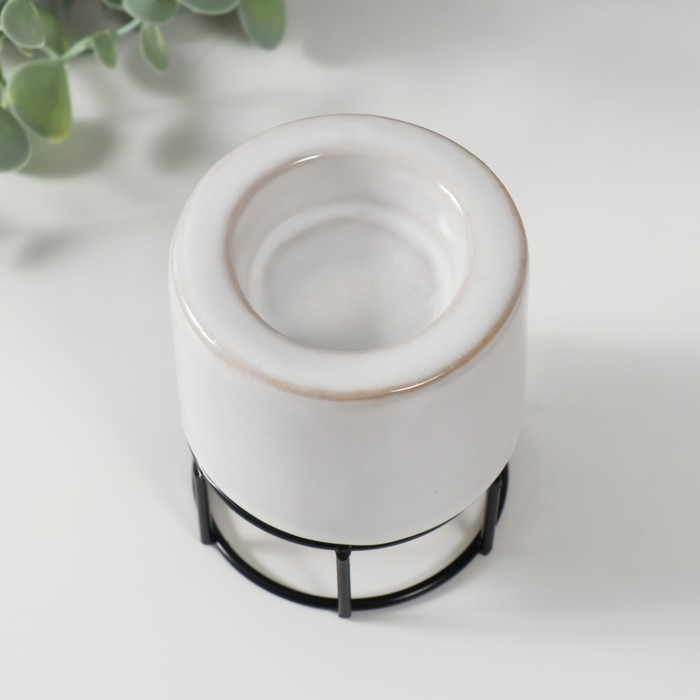 Подсвечник керамика, металл на 1 свечу "Пенёк" белый с чёрным 7,7х7,7х8,9 см