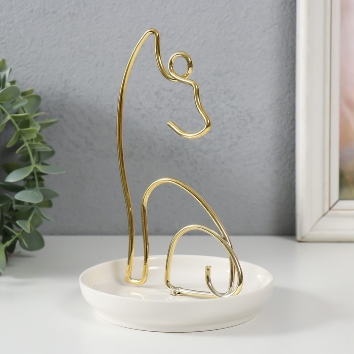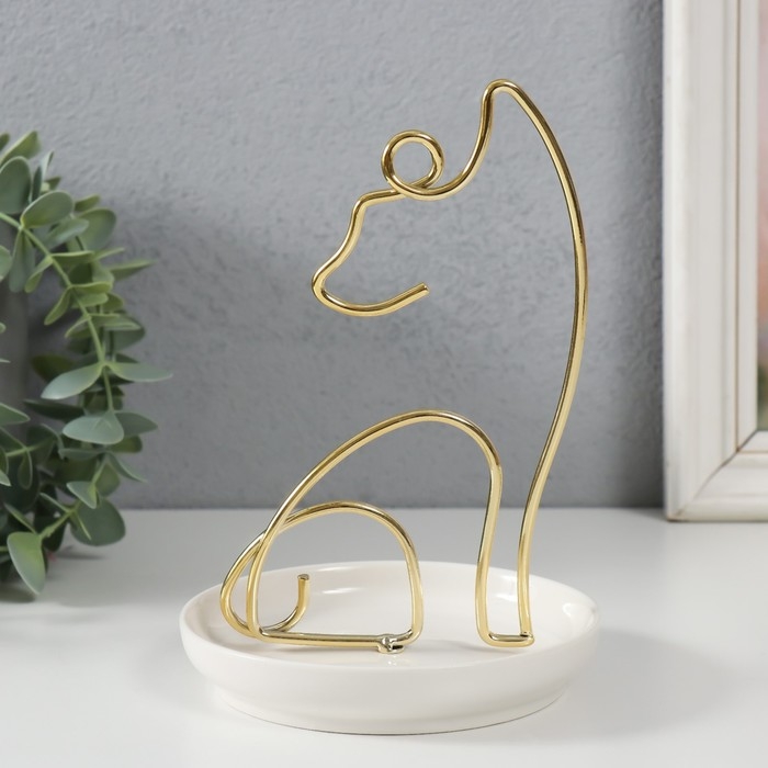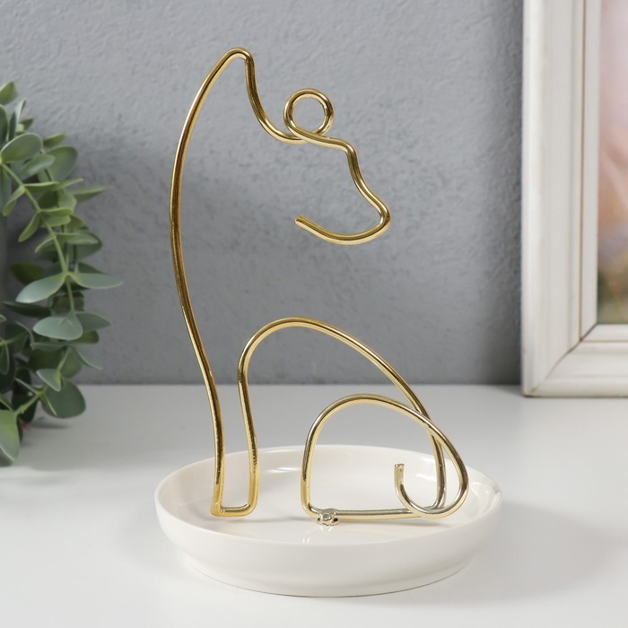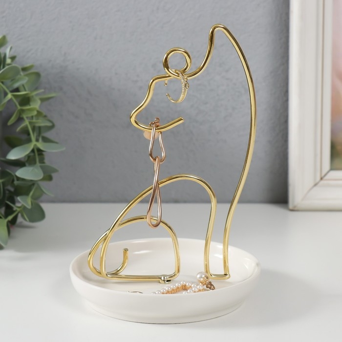 Сувенир керамика, металл подставка "Котик" белый с золотом 12х12х17 см