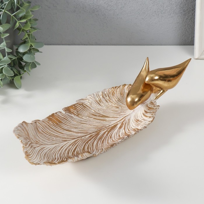 Сувенир полистоун подставка "Две птицы на листе" золото 36х11,3х11,7 см