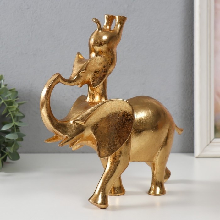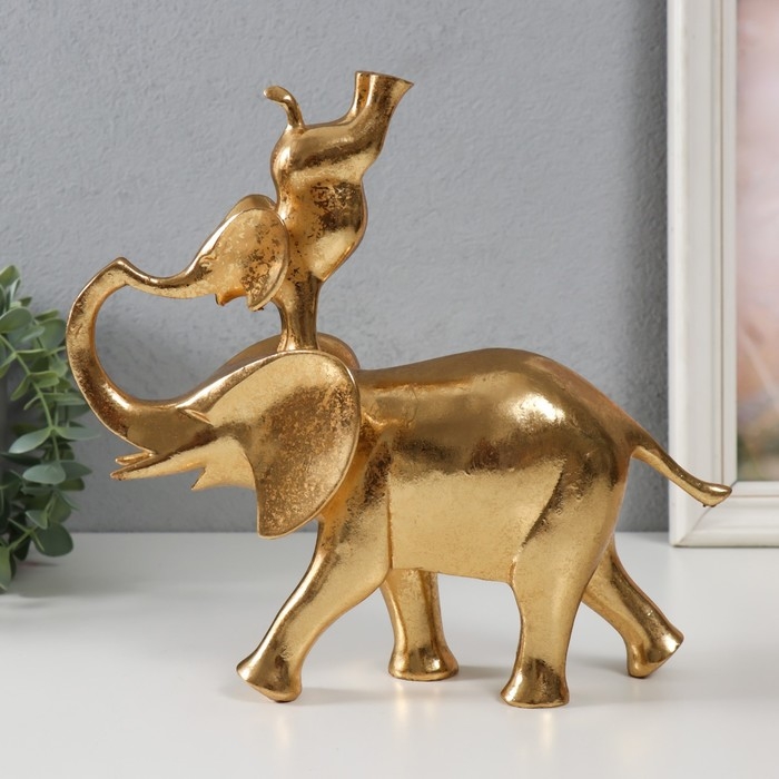 Сувенир полистоун "Слон со слонёнком на спине - гимнастика" золото 25х9х23,5 см