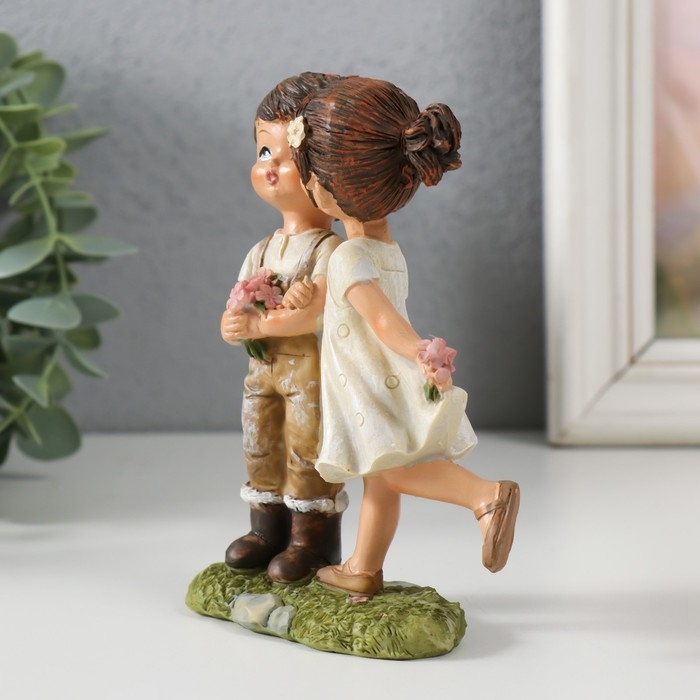 Сувенир полистоун "Малыши на прогулке - первый поцелуй" 9,5х4,5х12,5 см