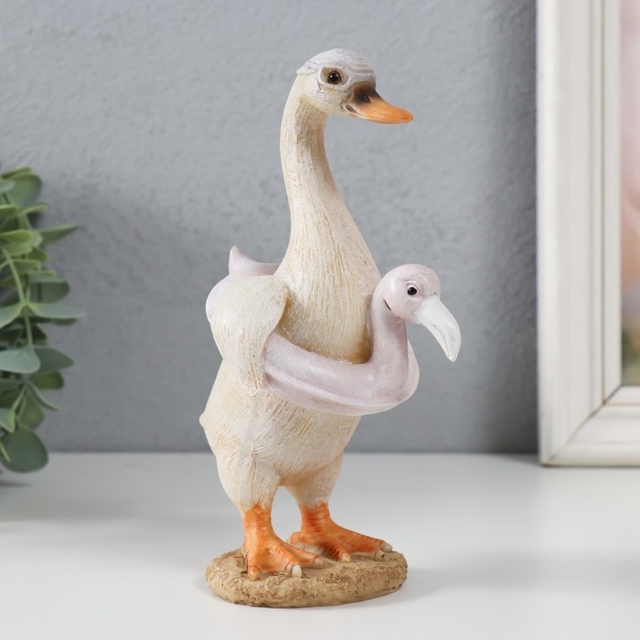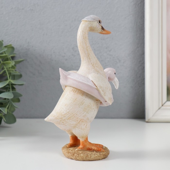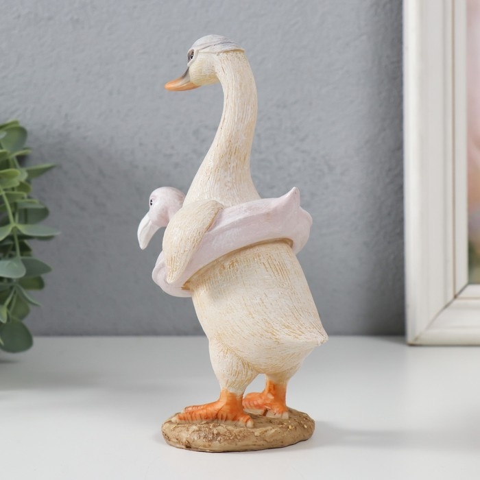 Сувенир полистоун "Гусь в надувном круге - фламинго" 10,5х7,5х16,5 см