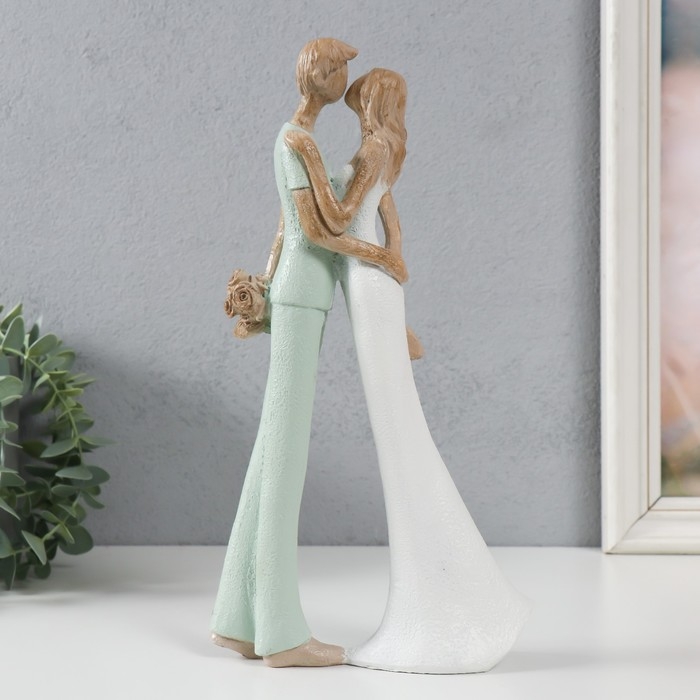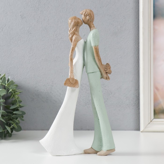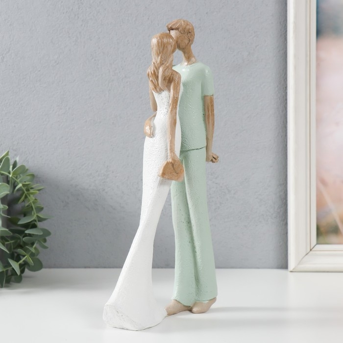Сувенир полистоун "Влюблённые. Поцелуй" бело-зелёный 15,5х6х29,5 см
