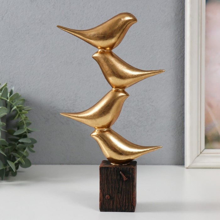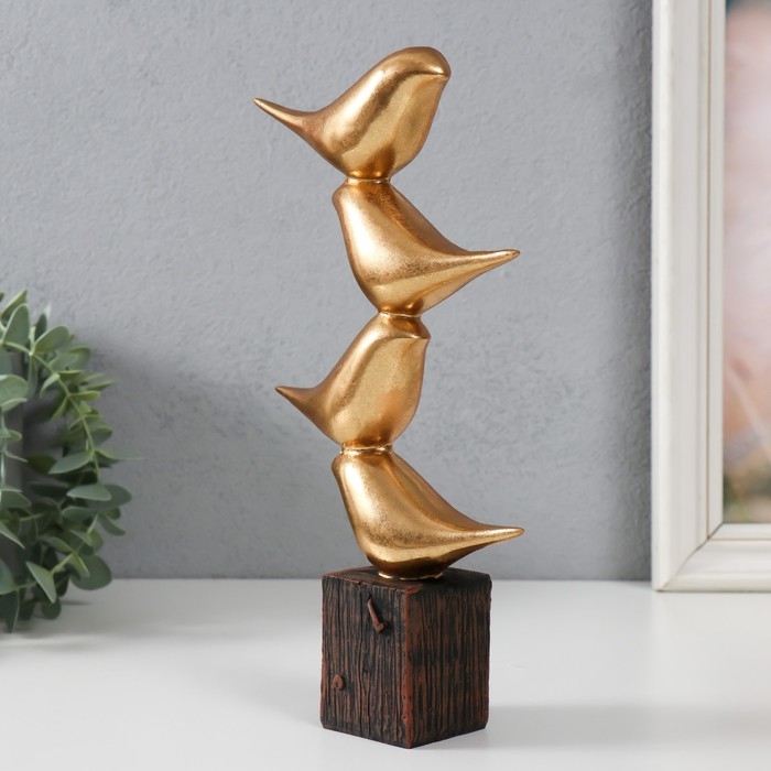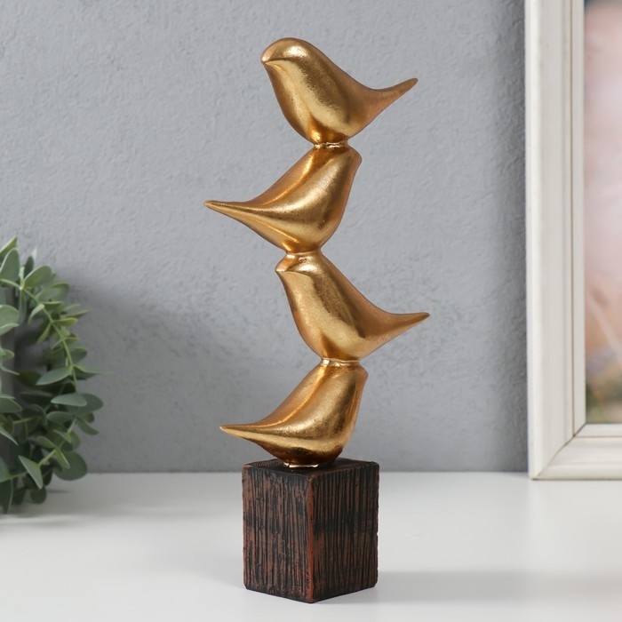 Сувенир полистоун "Четыре золотых птички - пирамида" 14х5х25 см
