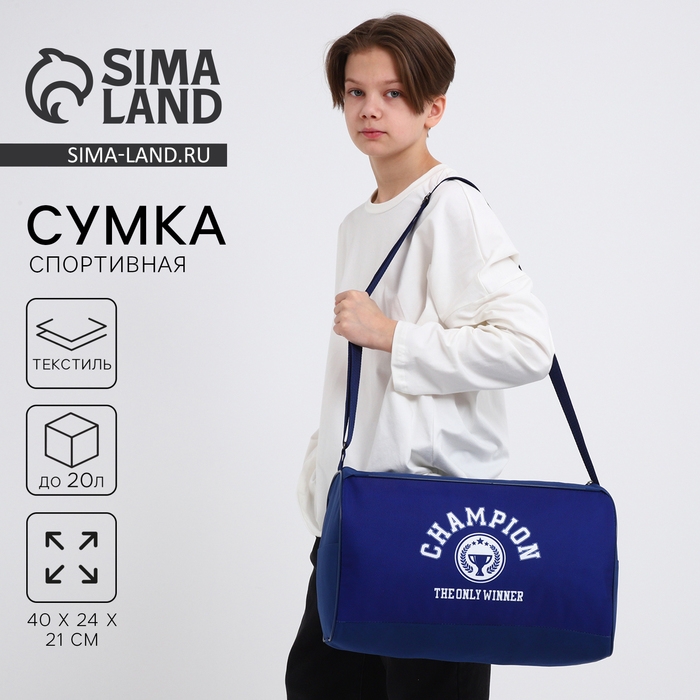 Сумка детская спортивная для мальчика «Чемпион», 40х24х21, отд на молнии, синий