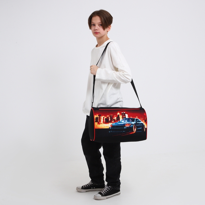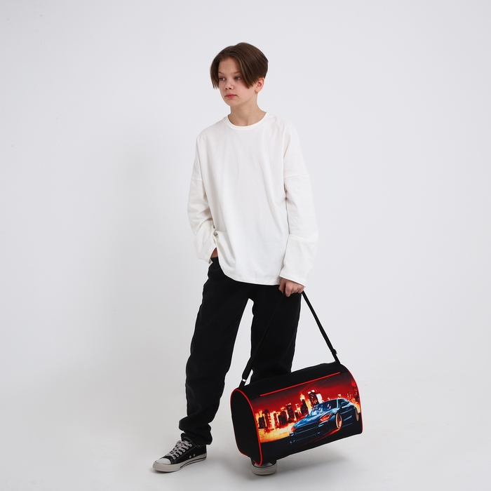 Сумка детская спортивная для мальчика «Крутая тачка», 40х24х21, отд на молнии, чёрный