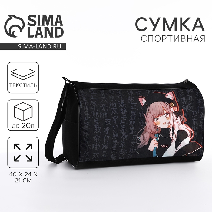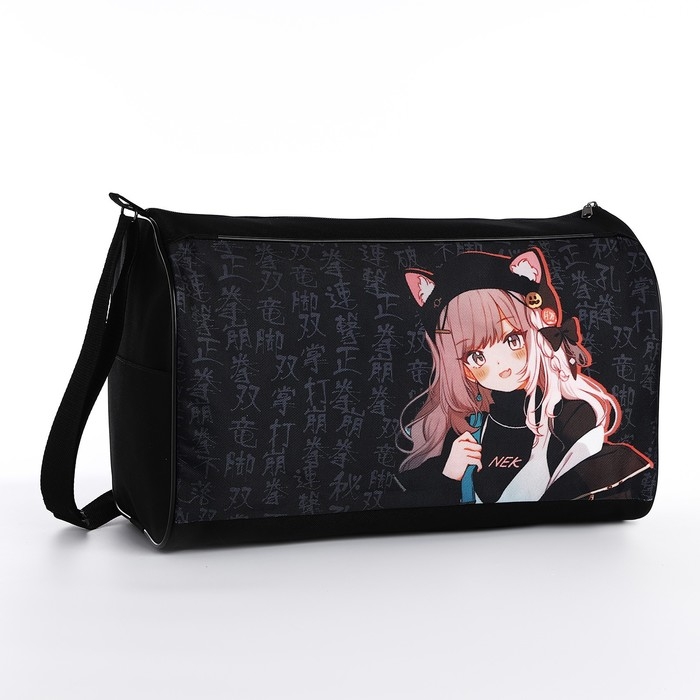 Сумка сдетская спортивная для девочки «Девочка с ушками», 40х24х21см, отд на молнии, чёрный
